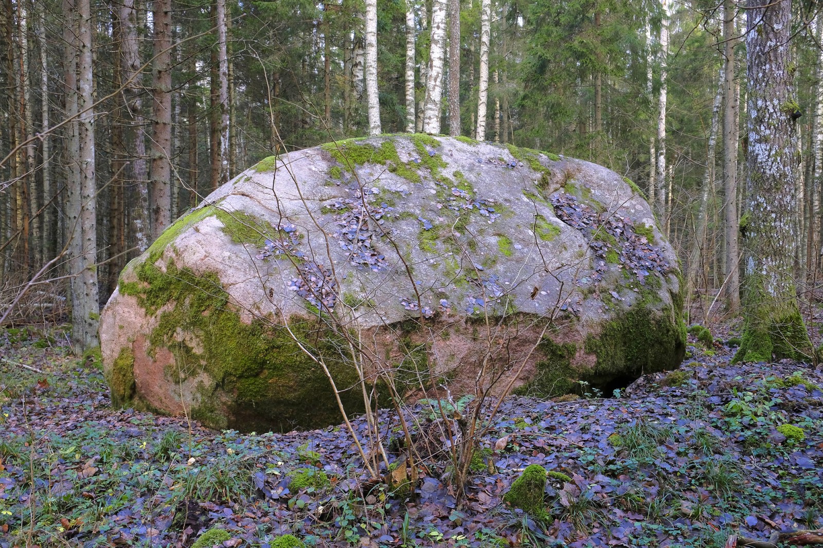 Ģeoloģiskais un ģeomorfoloģiskais dabas piemineklis, atrodas Dundagas pagastā, Slīteres nacionālajā parkā, 800 m uz ziemeļiem no Jušu mājām, valsts aizsardzībā kopš 1957. gada, viens no lielākajiem Latvijas dižakmeņiem, apkārtmērs – 18 m, augstums – 2,9 m, garums – 5,9 m, platums – 5,1 m, kopējais tilpums 60 m3, sārts granīts.