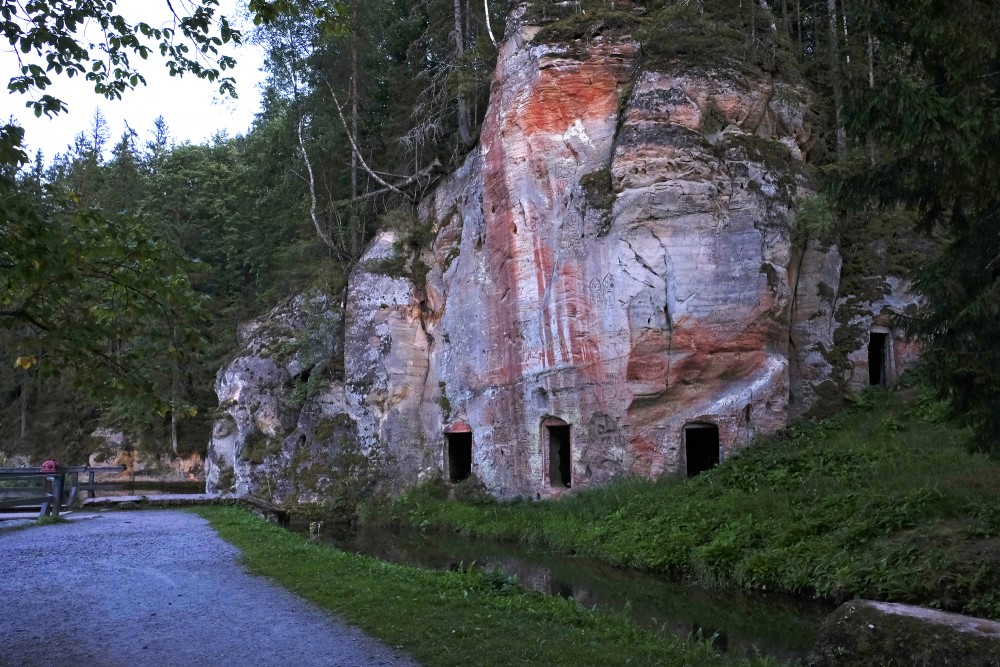 Klintīs vairāki taisnstūraini caurumi, kuros atradās mūsdienās jau pamesti pagrabi. Uz klints augšu ved tūristiem izveidotas koka kāpnes, savukārt tālāk iekārtotā taka to savieno ar attālākajiem, smilšakmenī izcirstajiem Rīgaskalna pagrabiem.
