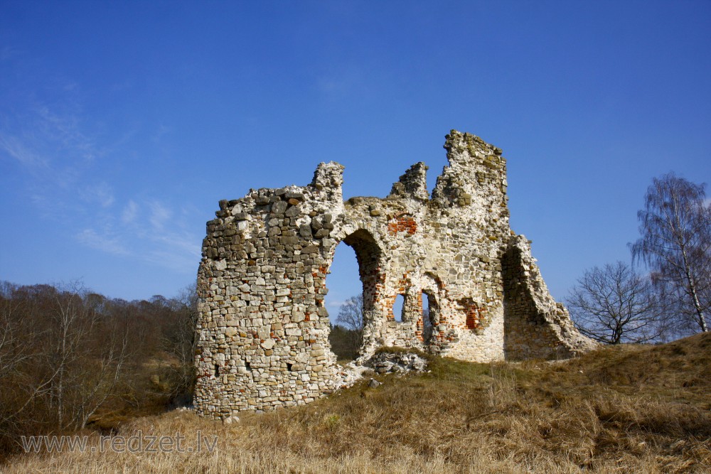 Aizkraukle Castle (Latvian: Aizkraukles pils; German: Ascheraden) is a ruined medieval castle, located on the right bank of the river Daugava in Latvia to the west of the modern town of Aizkraukle. The castle was built in the second half of the 14th century by the Livonian Order. From 1334 to 1480 it was the seat of a Komtur.
