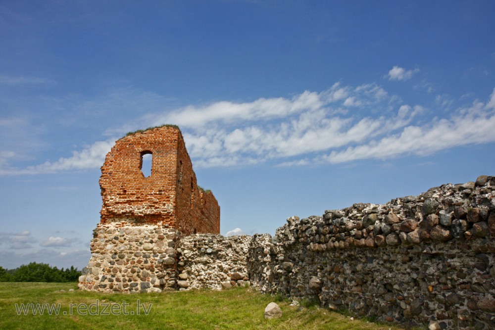 Ludza Castle (Latvian: Ludzas pils, German: Ordensburg Ludsen) was a medieval castle built in Gothic style located next to a Catholic church, on the site of a former Latgalian wooden castle in the centre Ludza, Latvia, a small town in eastern Latgale. Its main purpose was to be an eastern outpost to control trade routes from Russia. Nowadays the impressive fragments of the castle walls, including a three-floor high fragment, still remain. The ruins are the main tourist attraction in the Ludza District, and is considered a symbol of the town.