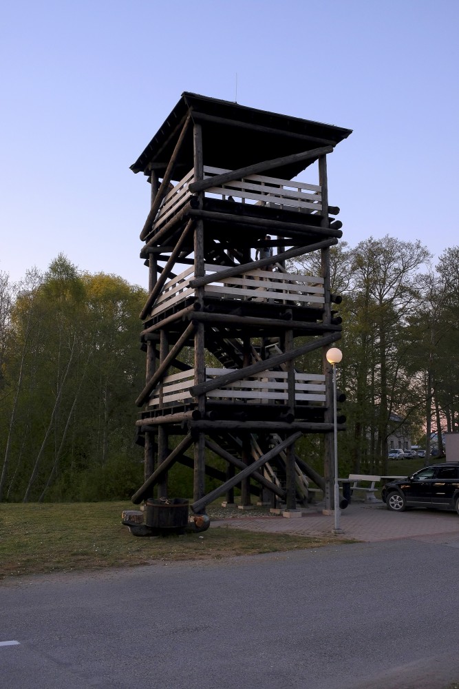Kuiviži observation tower is 14 m high. Next to the lookout tower there is a landscaped square, tables and benches.