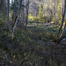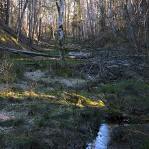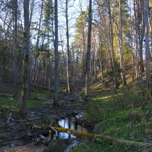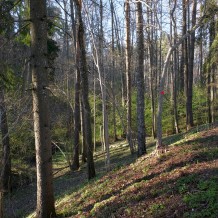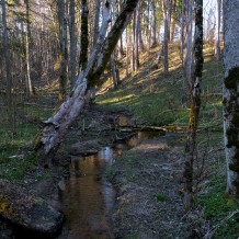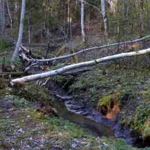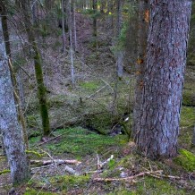 Tad taka iet pāri gravai cauri briežu mežam, un mēs nonākam pie otrās gravas. Tajā tek avotiņš, saimnieko bebri, bet pati grava nav pārāk dziļa. Barona laikā tur ir bijuši foreļu dīķi.