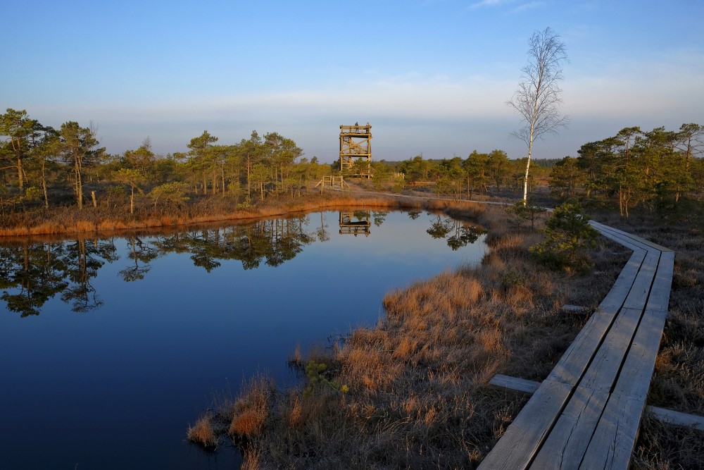 Skatu tornis ir izbūvēts Lielā Ķemeru tīreļa laipas lielajā lokā (~3,4 km). No tā paveras brīnišķīgs skats uz augstā purva ainavu, kurā vienkopus novērojama sūnu, purva priedīšu, akaču un tumšu ezeriņu mozaīka. Tornis kalpo arī par lielisku platformu dažādu putnu vērošanai. Tīrelī var sastapt purva tilbīti, balto cielavu, koku čipsti, kā arī tālumā dzirdēt dzērves.
